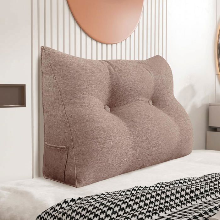 Johnear Coussin de Lecture pour lit ou canapé Velours, Traversin Gros Coussin Dossier Repos,Oreiller Triangulaire Coussin Coin, tête de lit,Coussin Lombaire, cale Dos Plage, Beige 180 x 20 x 50 cm