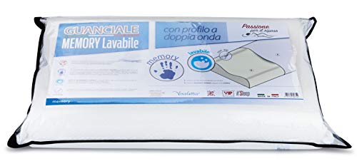 Marcapiuma - Paire d’oreillers Mémoire de Forme Modèle Savon avec Housse 100% Coton - Coussin cervicale Aéré Mousse à mémoire Aéré Orthopédique Dispositif Médical Classe 1 CE - 100% Made in Italy