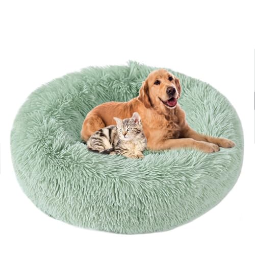 ZHULONGRUSHUI Coussin pour Chien XXL,Panier Chat Chien Lit Rond pour Chats Chiens,Donut Rond Chiens Panier Anti Stress Peluche Confortable Moelleux Lavable Anti Dérapant(Vert Clair)