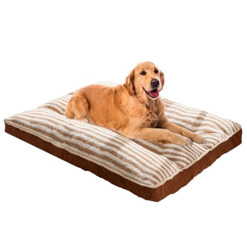 Coussin Chien Grande Taille XXL, Matelas pour Cage Apaisant, Panier Chiens Lavable et Antidérapant, Tissu Peluche Doux, Tapis Matelas Lit Confortable (Brun,L 80 x l 55 x H 6 cm)
