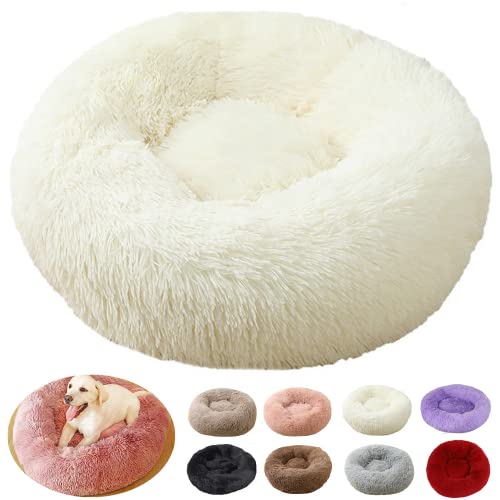 DUCHEN Lit pour Chien Grande Taille XL Beige,Panier Chien Anti Stress,Coussin Chien Apaisant XXL,Panier pour Chien Rond Orthopedique,Tapis Chien Moelleux Lavable,Fermé,Moyen Taille,Dehoussable