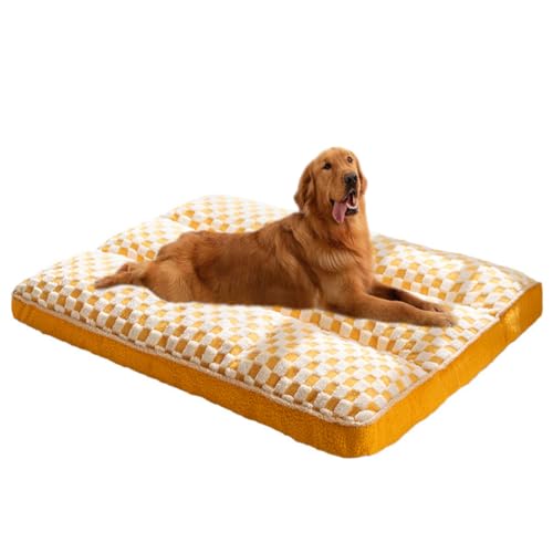 Coussin Chien Grande Taille XXL, Matelas pour Cage Apaisant, Panier Chiens Lavable et Antidérapant, Tissu Peluche Doux, Tapis Matelas Lit Confortable (Jaune,L 120 x l 80 x H 8 cm)