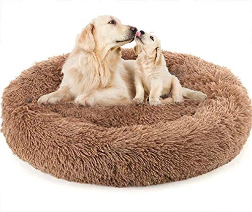 Yuly Moelleux Tapis Chien Coussin XL, XXL Orthopedique Panier Anti Stress, XXXL Rond Coussin Apaisant Panier pour Moyen Grand Taille Donut, Lavable Peluche Animale Compagnie Lit