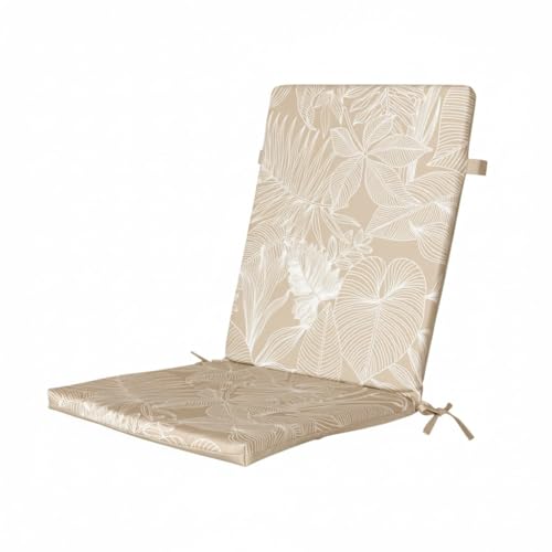 Atout Ciel Coussin de Fauteuil d'extérieur Bicolore en Tissu déperlant 90x40cm, Beige imprimé/uni