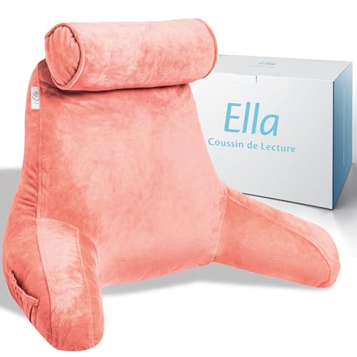 Ella Coussin de Lecture avec Rouleau de Cou - Oreiller de Lecture avec Accoudoirs, Soutien du Dos et du Cou pour la Lecture ou la Relaxation - Coussin de Dossier Fauteuil de Lecture - Velours (Rose)