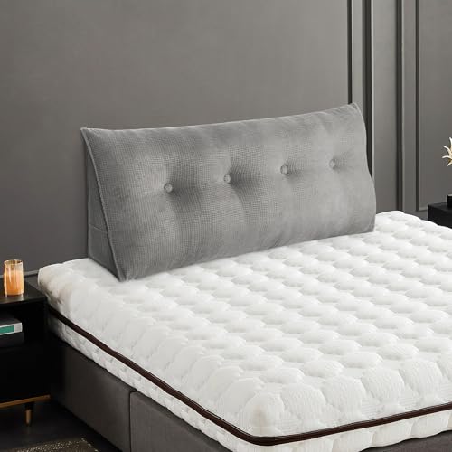 Coussin de tête de lit triangulaire pour repos au lit avec housse amovible Coussin de lecture pour positionnement du dossier – Coussin de lecture pour s'asseoir dans le lit-140*50*20 cm-gris