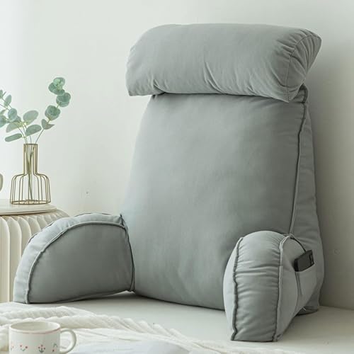 HEATHE Oreiller De Lecture avec Accoudoirs,Grand Lit Dossier Coussin,avec Repose Nuque,pour Le Soutien du Dos et du Cou Pendant la Lecture (Light Gray)