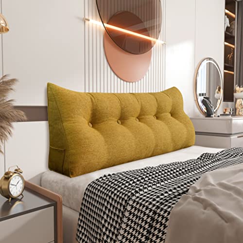 Johnear Coussin de Lecture pour lit et canapé - Coussin Dossier Triangulaire avec Support - Ergonomique pour Le Dos, la tête et Les Jambes - Housse en Lin, Jaune 160 x 20 x 50 cm