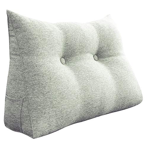 VERCART Oreiller de Dossier pour Lit Coussin de Lecture Compensé Triangulaire Coussin de Soutien Large Coussin Appui-tête pour S'asseoir Confortablement sur Le Lit ou Le Canapé en Lin Beige Gris 45cm