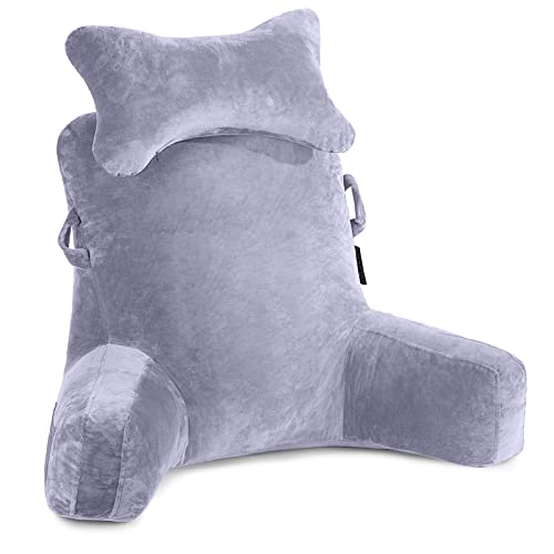 HEATHE Oreiller De Lecture avec Accoudoirs,Grand Lit Dossier Coussin,avec Repose Nuque,pour Le Soutien du Dos et du Cou Pendant la Lecture (Gris)
