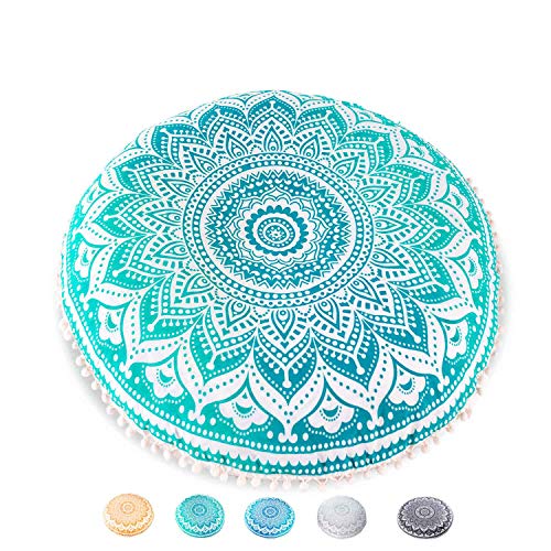 Mandala Life ART Bohémien Yoga Décor Housse de Coussin de Sol - 75cm - Taie d'oreiller Tapis de Méditation Ronde - Décoratif Pouf Tapis en Coton imprimé