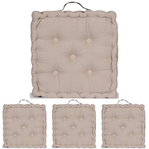 Atout Ciel Coussin de Sol 40x40cm avec Anse contrastée, Carré, Taupe (Lot de 4)