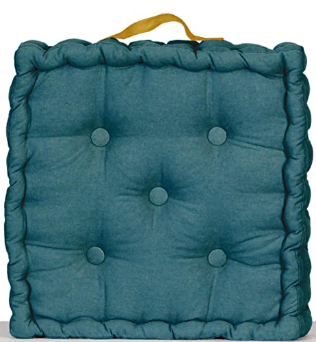 Coussin de Sol avec poignée, 50 x 50 cm, Bleu Canard, 100% Coton, Garnissage 100% Coton recyclé, Capitonné pour Assurer Une Bonne Tenue, Collection Panama, Enjoy Home