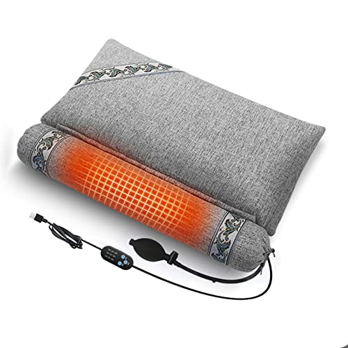 Oreiller gonflable à traction cervicale gonflable, Oreiller cervical aux écales de Sarrasin,Oreiller gonflable en cosse de sarrasin avec massage chaud,civière à pression cervicale réglable,Gris