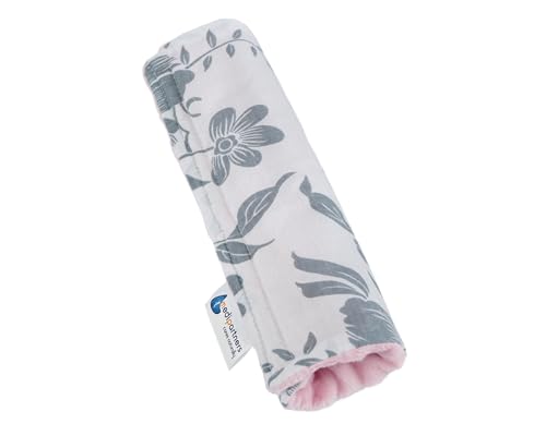 Medi Partners Protège Ceinture Enfant Coussin de Sécurité Voiture Protege Kids 17x22cm 100% Coton Minky Cover Securite Auto Poussette pour Bebe Amovible (Fleurs avec Minky Rose)
