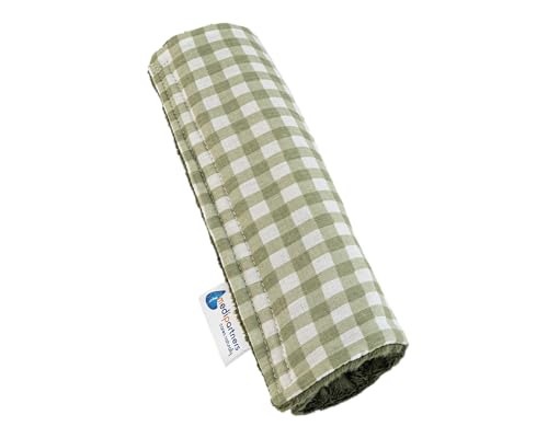 Medi Partners Protège Ceinture Enfant Coussin de Sécurité Voiture Protege Kids 17x22cm 100% Coton Minky Cover Securite Auto Poussette pour Bebe Amovible (Grille avec Olive Minky)