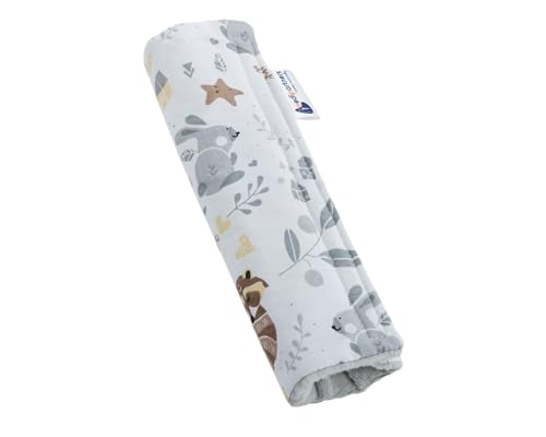 Medi Partners Protège Ceinture Enfant Coussin de Sécurité Voiture Protege Kids 17x22cm 100% Coton Minky Cover Securite Auto Poussette pour Bebe Amovible (Cerf avec Minky Gris)
