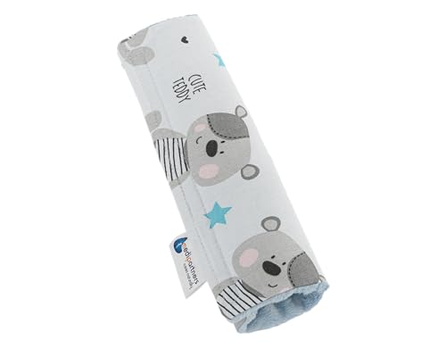 Medi Partners Protège Ceinture Enfant Coussin de Sécurité Voiture Protege Kids 17x22cm 100% Coton Minky Cover Securite Auto Poussette pour Bebe Amovible (Teddy avec Un Minky Bleu)