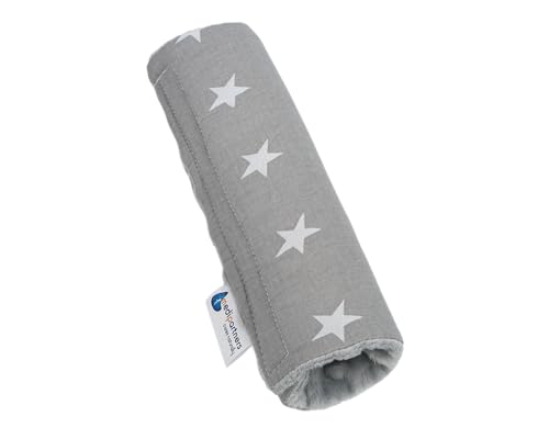 Medi Partners Protège Ceinture Enfant Coussin de Sécurité Voiture Protege Kids 17x22cm 100% Coton Minky Cover Securite Auto Poussette pour Bebe Amovible (Étoiles avec Minky Gris)