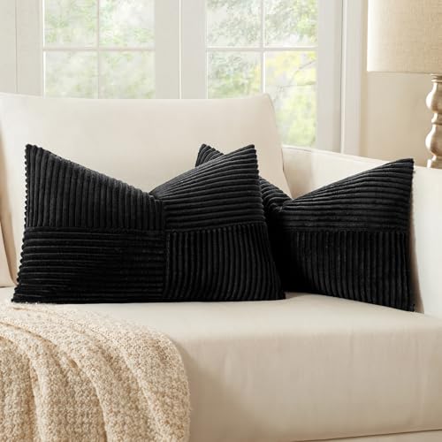 MIULEE Lot de 2 Housse Coussin en Velours Côtelé 50x50cm Noir Housse de Coussin Decoratif Coussin de Canapé Moderne Doux Déco Coussin de Canapé