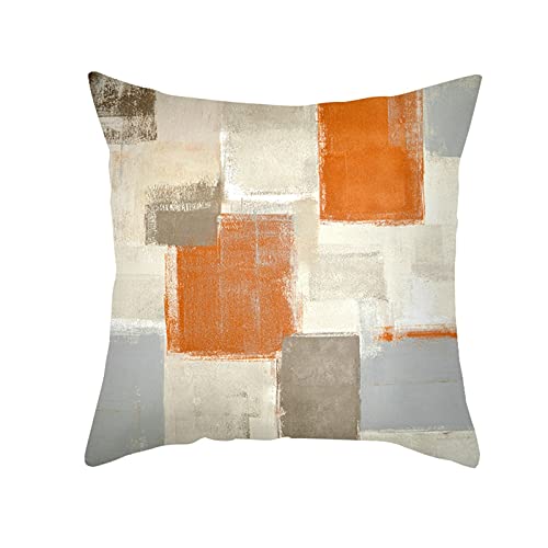 Daesar Housses de Coussin Canape, Housse de Coussin 50x50 Orange Gris Café Taie D Oreiller Deco Motif en Treillis, Polyester