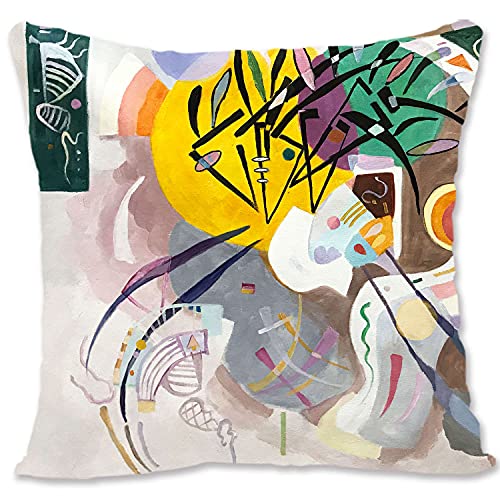 BONNIU Housse Coussin Canape Decoration 50X50 cm Couvre Oreiller Velours Zippé Abstrait Art Deco - Kandinsky - Courbe Dominante 1936 B0014