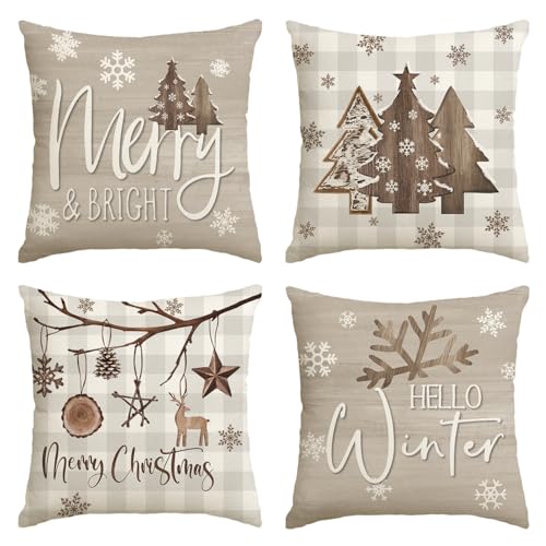 Artoid Mode Housses de coussin décoratives Sapins de Noël Flocons de neige Planches Étoile Noël 4er Set, 45x45 cm Housse de coussin de Noël Décorative Coussin Canapé Déco