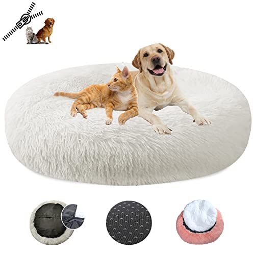 LRHRHR Panier pour Chien Dehoussable, Coussin Chien Anti Stress Lit Moelleux Apaisant Chat Lavable, Coussin Donut pour Chats et Chiens- White||Ø50cm/20in