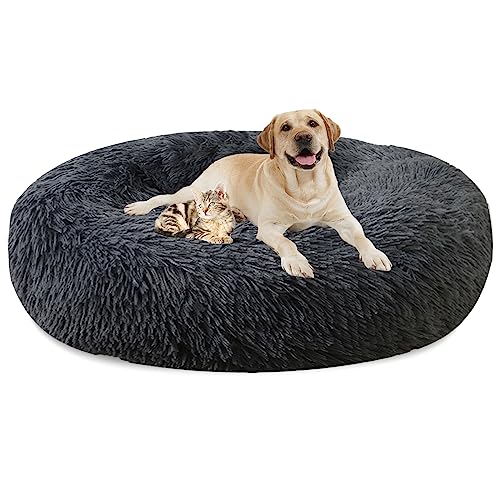 LRHRHR Panier pour Chien Dehoussable, Coussin Chien Anti Stress Lit Moelleux Apaisant Chat Lavable, Coussin Donut pour Chats et Chiens- Dark Gray||Ø110cm/43in