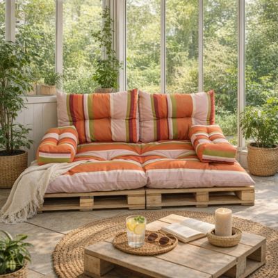 Coussin palette déperlant Bayader rayé multicouleurs L.120 x l.80 x ep.10cm Ornami