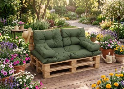 Coussin palette déperlant uni vert kaki L.120 x l.80 cm Easy for life