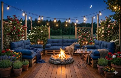 Coussin palette déperlant uni bleu marine L.120 x l.80 cm Easy for life