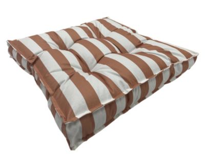 Coussin de sol déperlant rayé terracotta blanc L.60 x l.60 x ep.10cm Ornami