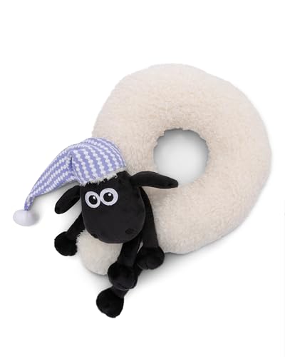 NICI Coussin Nuque Enfant Shaun Le Mouton 25x25cm - Coussin Nuque, Coussin Moelleux pour Enfants, Filles et garçons, Parfait comme Coussin de Voyage - 49655, Blanc