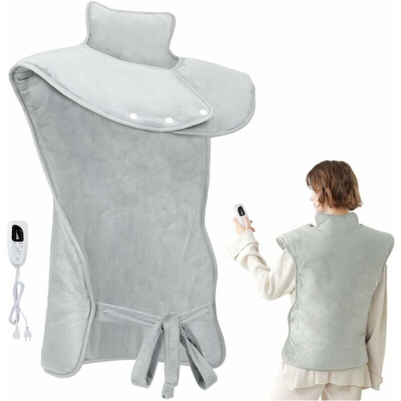 Coussin Chauffant dos Electrique Epaule et Nuque 60×100cm, 6 Niveaux de Chaleur, minuterie d'arrêt Automatique de 2 heures, Chauffage rapide,Lavable