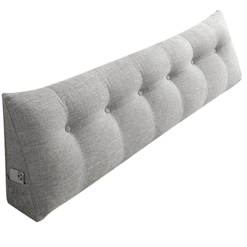 HUOLE Coussin de Lecture pour lit Coussin Compensé Triangulaire Oreiller De Coussin Tete de lit Dossier De TêTe De Lit Amovible Coussin Lombaire en Coin pour Chambre Lit Jour,120 * 50 * 20 cm-Gris