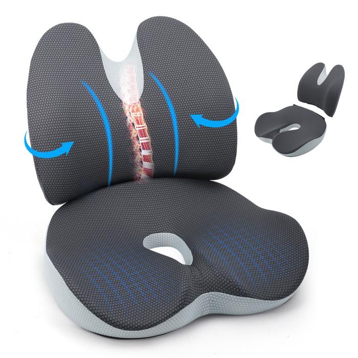 2 en 1 Coussin Chaise LombaireCoussin Chaise BureauCoussin Coccyx Ergonomique pour Bureau et VoitureCoussin de Siège pour Coccyx