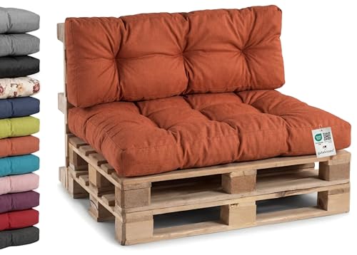 Gutekissen® Coussin de Palette Extérieur – Confort en Mousse pour Salon de Jardin, Terrasse, Balcon PPI (Dossier 120x60, gesteppt Orange)