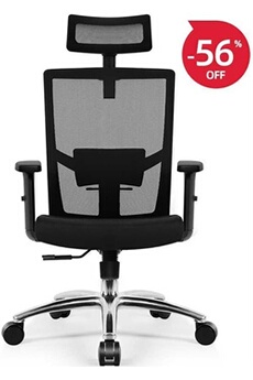 Chaise de Bureau Ergonomique avec Coussin Lombaire, Fauteuil de Bureau Confortable, Dossier et Assise Haute Accoudoirs Réglable
