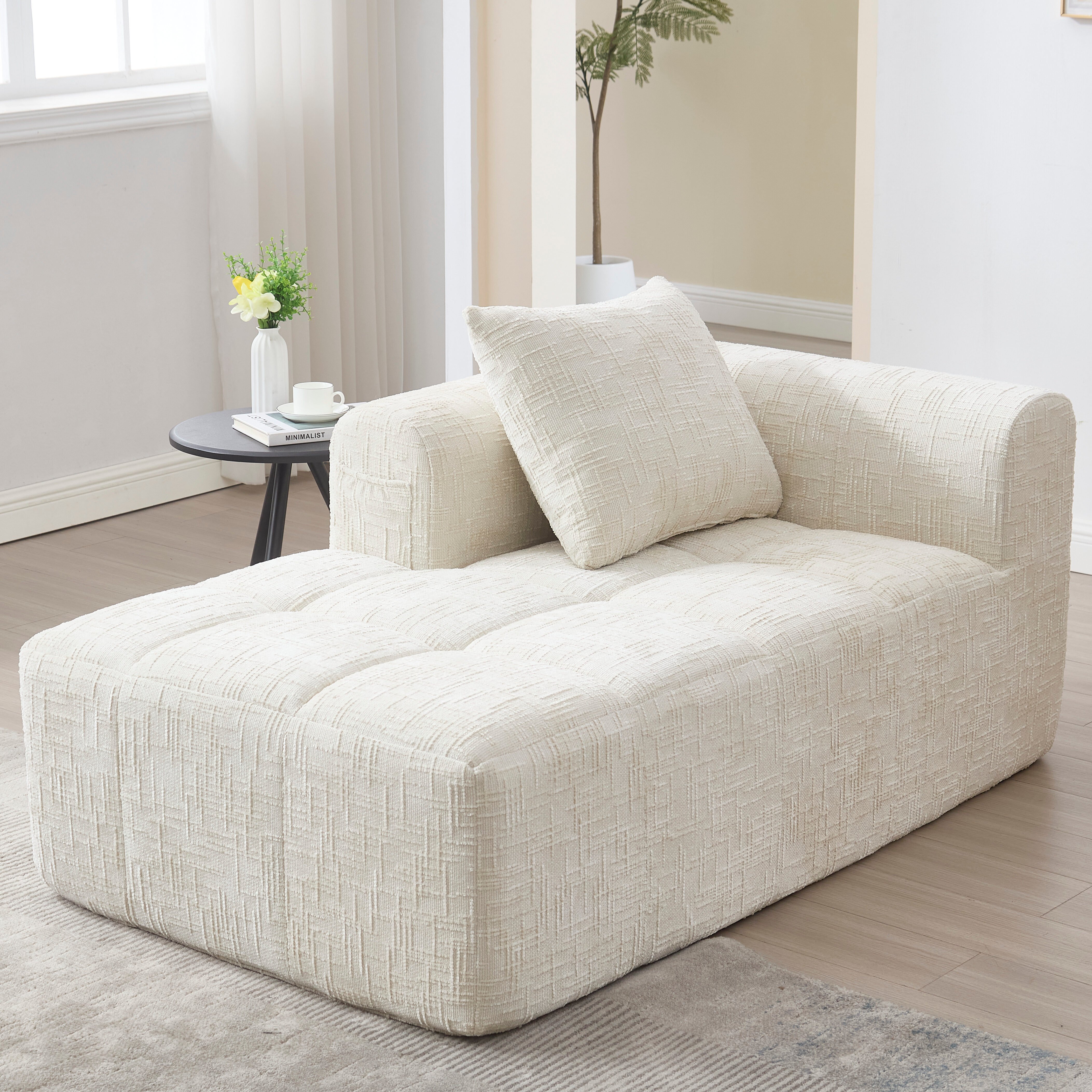 LVHOM Chaise longue Canapé-lit avec coussin, Fauteuil Lounge Fauteuil Relax Fauteuil individuel avec poche latérale, Canapé fonction sommeil, Fauteuil pour salon, Beige