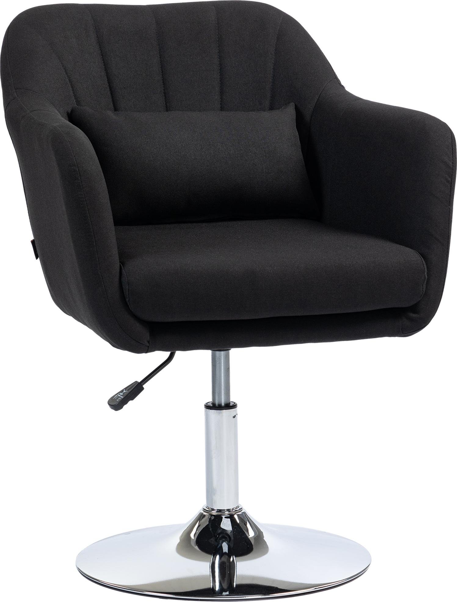 Fortuna Lai Fauteuil Fauteuil lounge avec accoudoirs, coussin lombaire, fauteuil relax rembourré avec structure métallique, aspect lin, chaise pivotante réglable en hauteur pour chambre à coucher, salon, noir