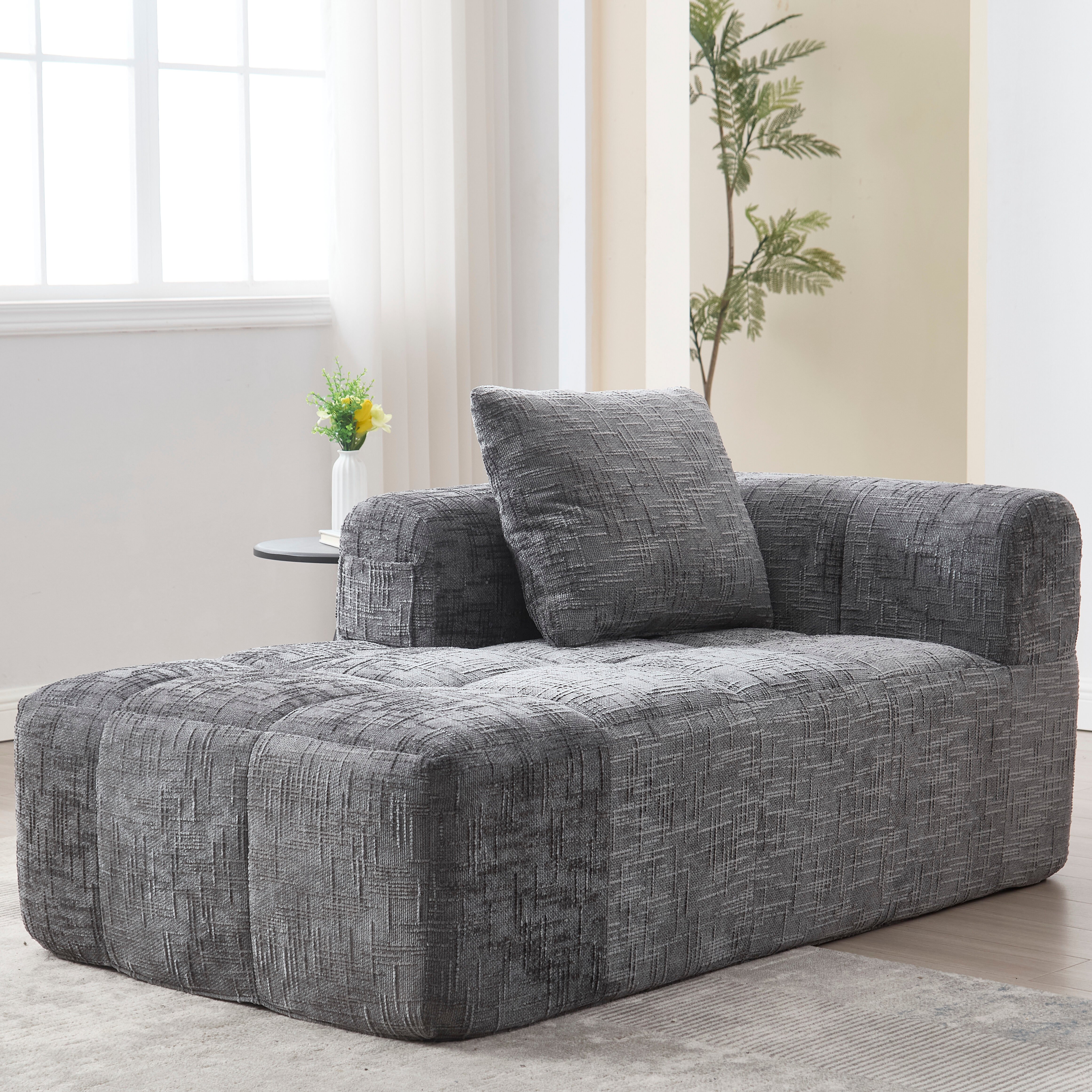 LVHOM Chaise longue Canapé-lit avec coussin, Fauteuil Lounge Fauteuil Relax Fauteuil individuel avec poche latérale, Canapé fonction sommeil, Fauteuil pour salon, Gris