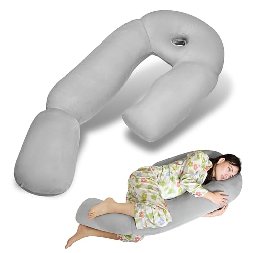 pozico Coussin de Grossesse U-Forme – Oreiller de Maternité Ergonomique avec Repose-Oreille – Coussin Corps Complet pour Dormir, Soulagement Dos, Hanches & Ventre – Housse Velours Lavable