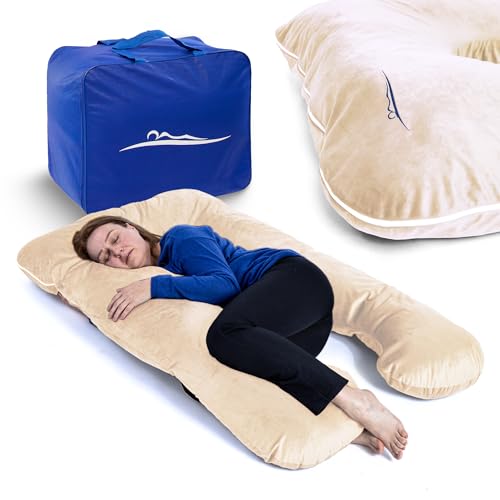 MKS Coussin de Grossesse pour Dormir 100x150 cm – Oreiller de Grossesse Ergonomique en U – Grand Support d’Allaitement – Accessoire maternité Lavable en Bambou Doux – (Bambou/Beige)