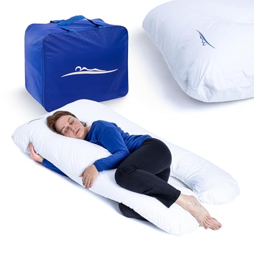 MKS Coussin de Grossesse pour Dormir 100x150 cm – Oreiller de Grossesse Ergonomique en U – Grand Support d’Allaitement – Accessoire maternité Lavable en Bambou Doux – (Coton/Bleu)