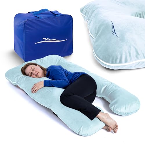 MKS Coussin de Grossesse pour Dormir 100x150 cm – Oreiller de Grossesse Ergonomique en U – Grand Support d’Allaitement – Accessoire maternité Lavable en Bambou Doux – (Micropeluche/Bleu Ciel)
