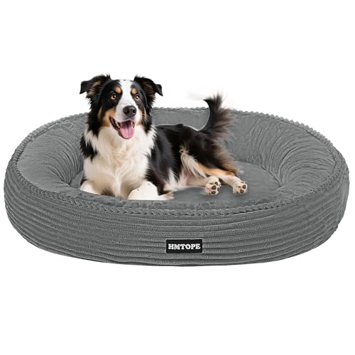 HMTOPE Lit pour chien de taille moyenne, lit pour chat lavable, coussin douillet pour chien, panier rond en velours côtelé, donut, canapé pour chien, amovible et antidérapant, Ø 80 cm, gris foncé