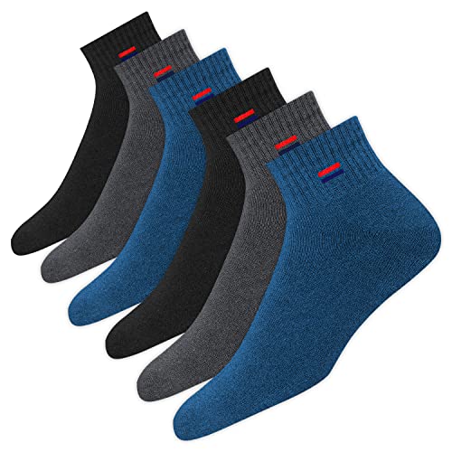 NAVYSPORT Chaussettes Homme 47-49 Sport Coton Coussin Quart Long - Lot de 6 Paires Chaussettes Courtes Unisexe (EU 47 49, Bleu/Noir/Gris)