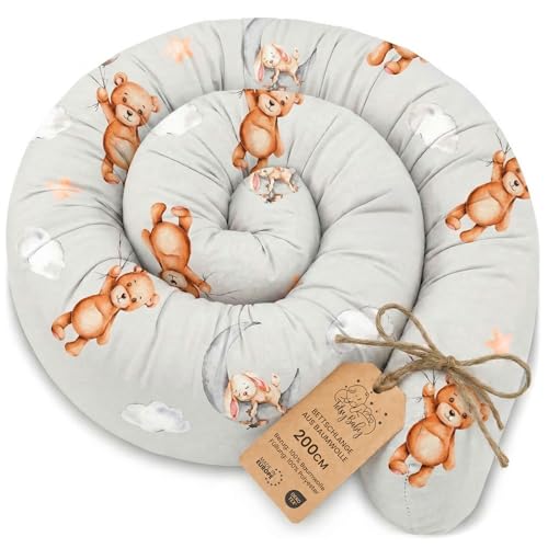 Protège-cadre de lit bébé tressé long, coussin moelleux en forme de serpent avec nœuds (2m)