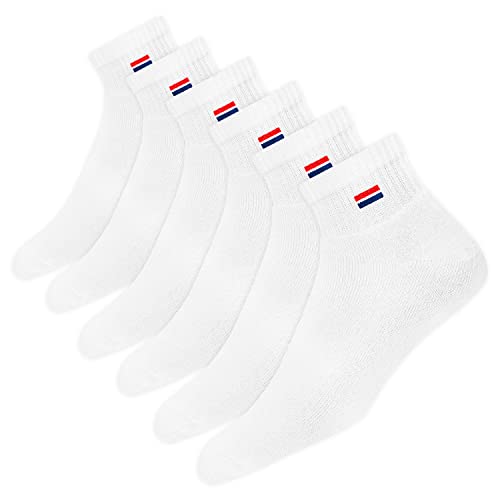 NAVYSPORT Chaussettes Homme 39-42 Sport Coton Coussin Quart Long - Lot de 6 Paires Chaussettes Courtes Unisexe (EU 39 42, Blanc)